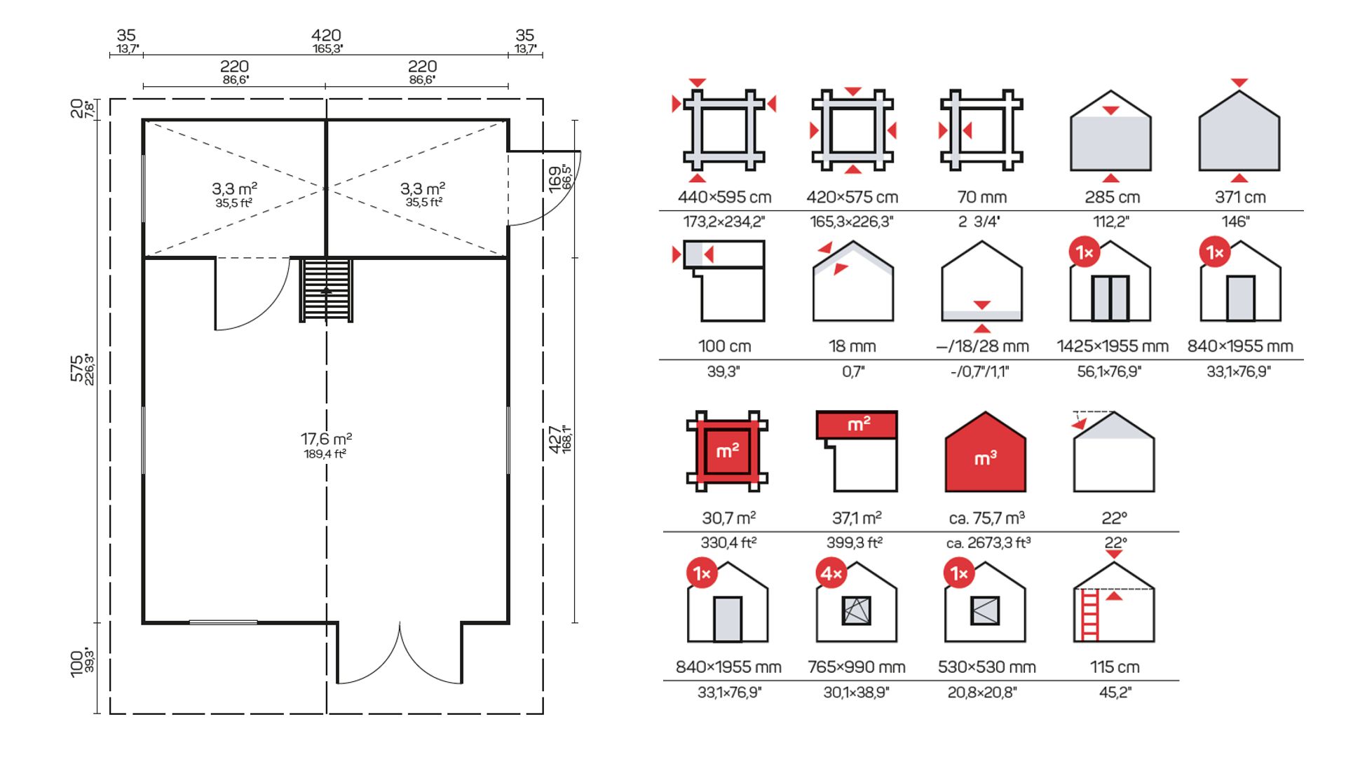 • Ove kuće su obično izrađene od kvalitetnog drva, kao što su bor, smreka ili cedar. Drvo može biti obrađeno ili neobrađeno, ovisno o željenom izgledu i zaštiti.