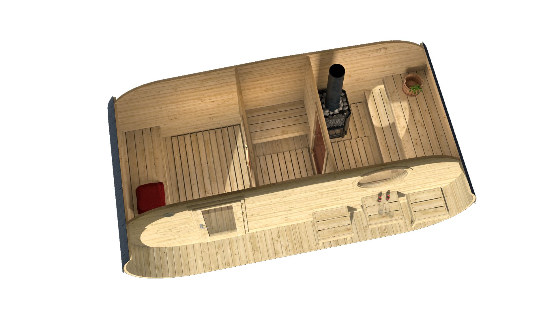 Gotovi ovalni set za saunu uključuje: