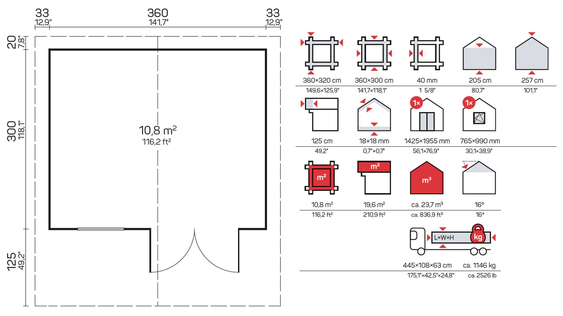 Sve drvene kućice od 28 i 40 mm, dječje kućice za igru, nadstrešnice, ljetne kućice i garaže sadrže standardni set: vrata, prozore i opremu za pričvršćivanje koji čine montažu kućica jednostavnom i brzom.