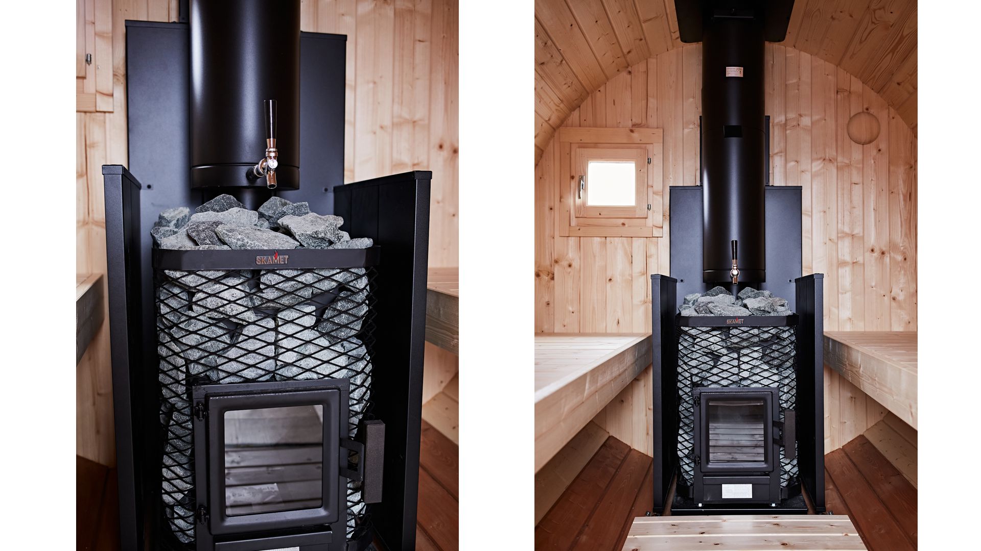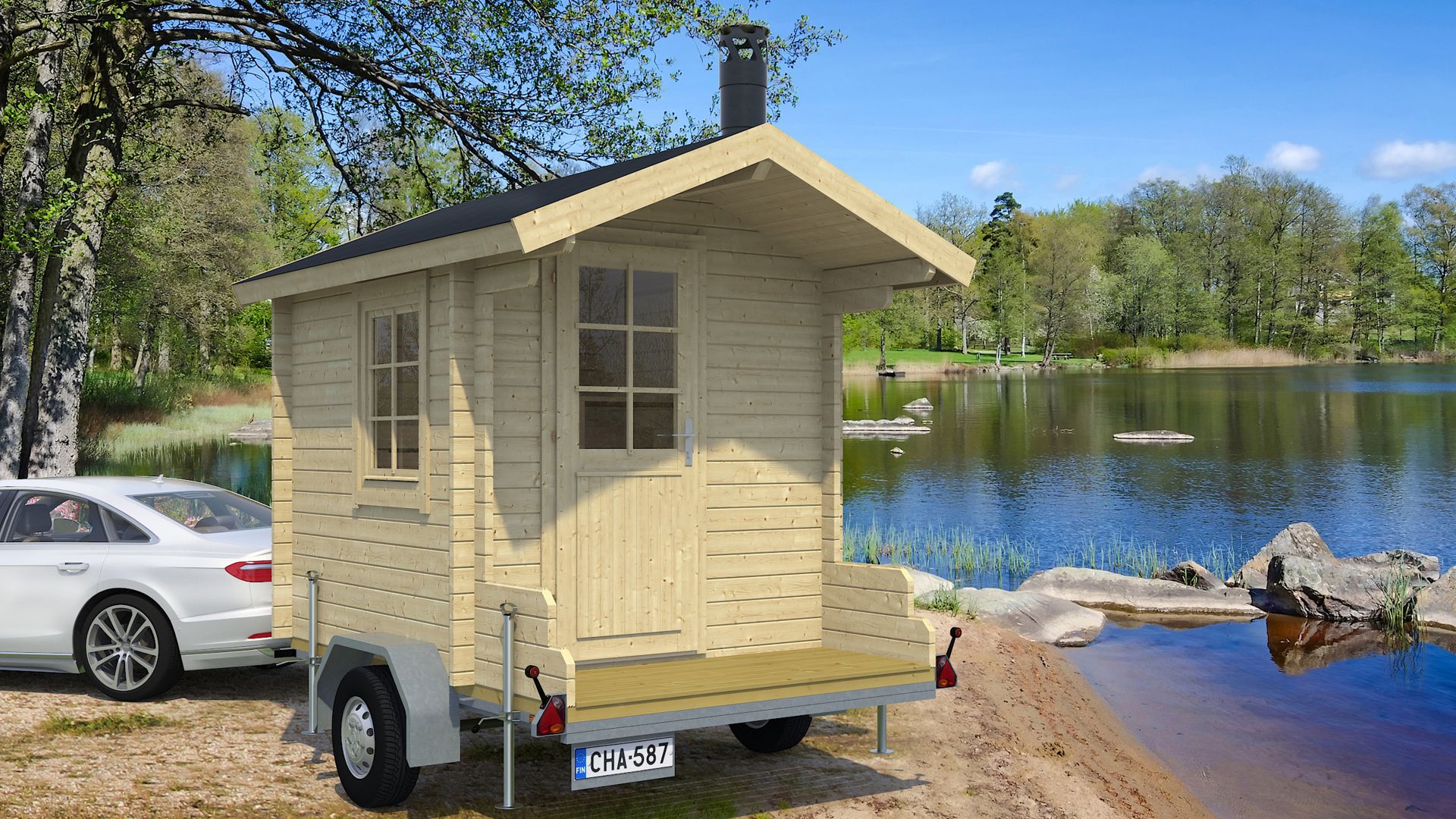 Saune na prikolici nude izvrsnu priliku gdje postoje ograničenja ili nije dopuštena izgradnja saune. Saune na prikolici su mobilne, za cjelogodišnju upotrebu i ne trebaju građevinsku dozvolu. Kada dođe zima, ako je potrebno, svoju saunu možete dovesti na kućnu parcelu da prezimi. Izrađene su od visokokvalitetnog drva smreke, u kompletu je postolje od johe, grijač na drva i visokokvalitetni dimnjak finske proizvodnje sa spremnikom za vodu i klapnom.