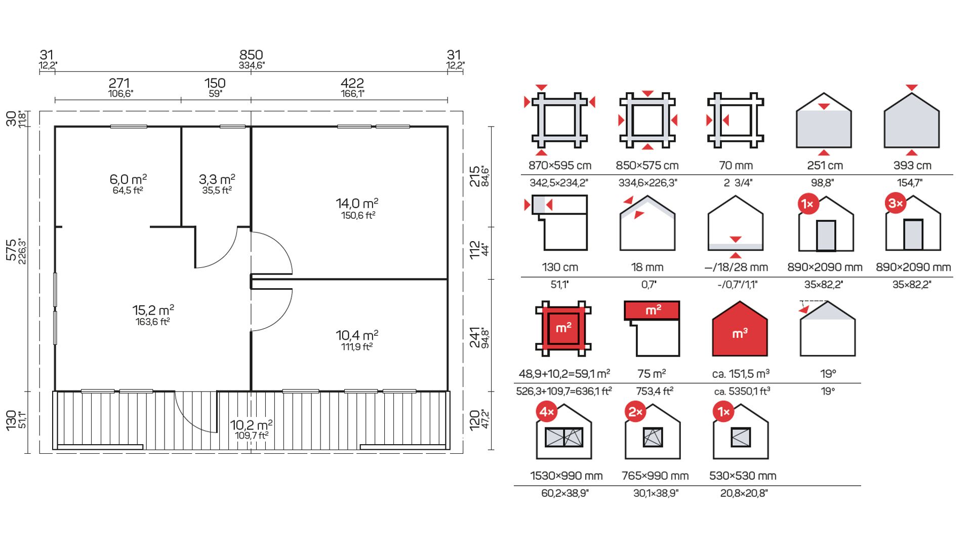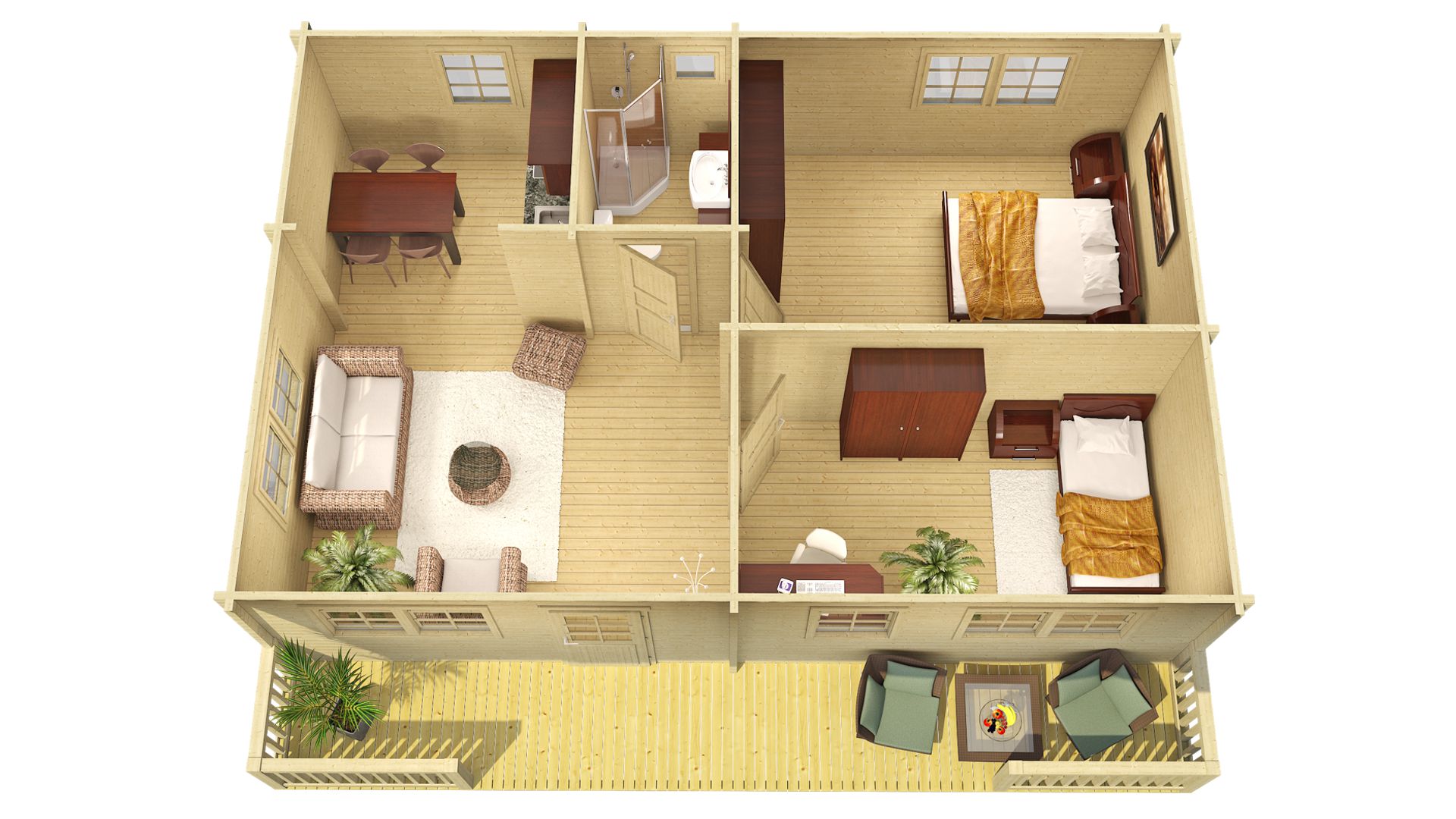 • Drvene kuće debljine 70 mm nude razne mogućnosti dizajna. Mogu biti prilagođene prema potrebama vlasnika, uključujući raspored prostorija, veličinu prozora i vrstu krova.
