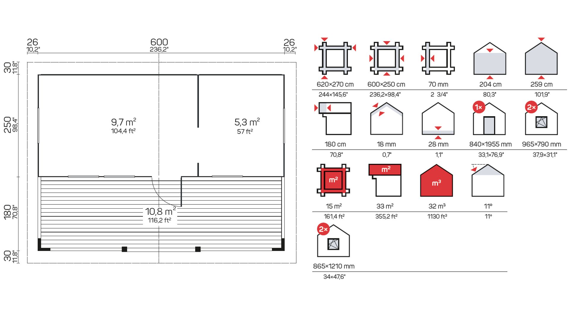 • Drvene kuće debljine 70 mm nude razne mogućnosti dizajna. Mogu biti prilagođene prema potrebama vlasnika, uključujući raspored prostorija, veličinu prozora i vrstu krova.