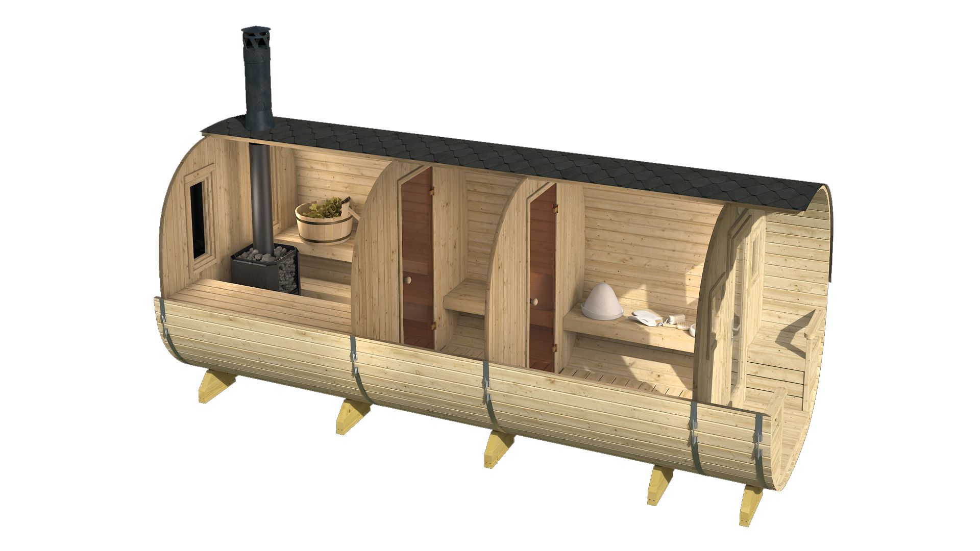 Gotovi bačvasti set za saunu uključuje: