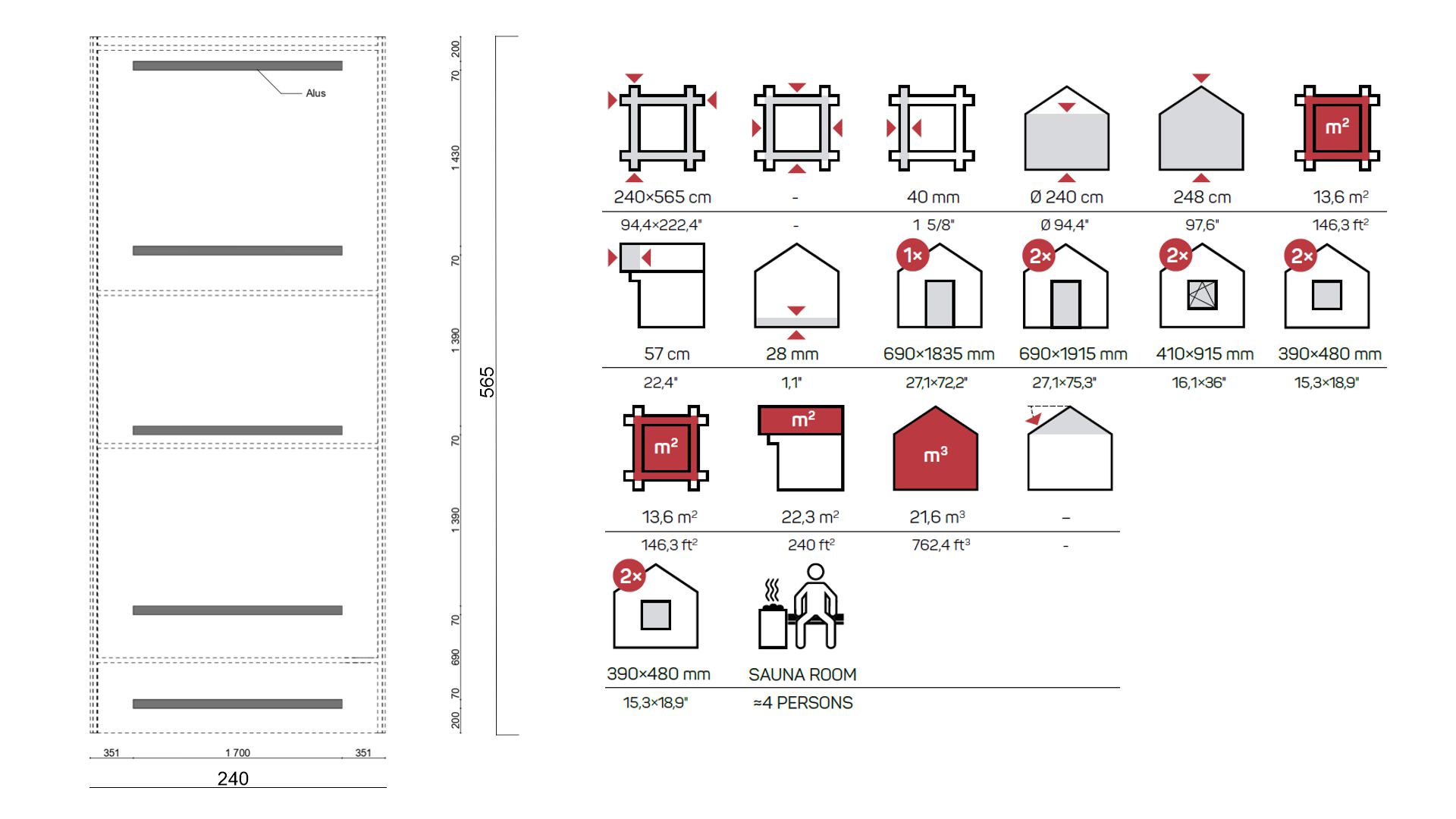 Sve drvene saune od 40 mm sadrže standardni set: vrata, prozore i opremu za pričvršćivanje koji čine montažu jednostavnom i brzom.