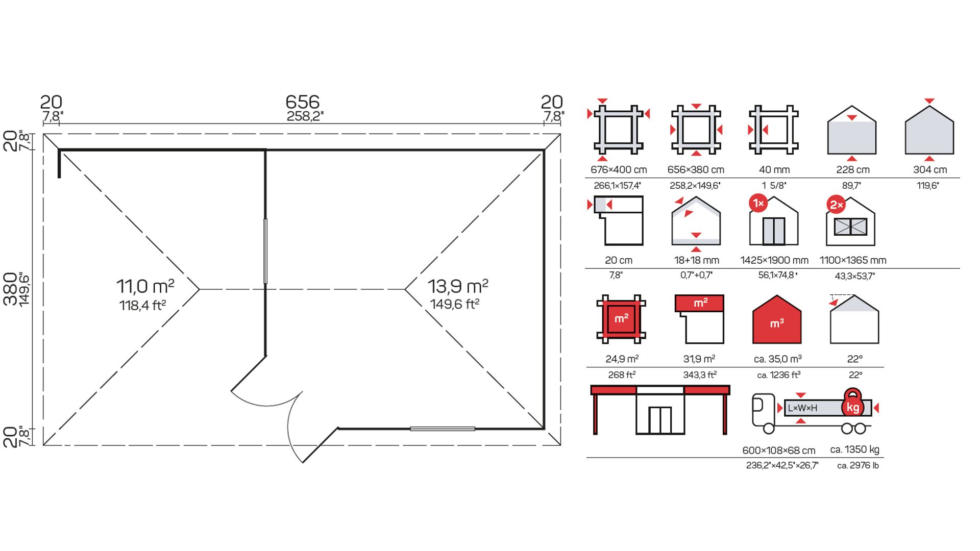 Sve drvene kućice od 28 i 40 mm, dječje kućice za igru, nadstrešnice, ljetne kućice i garaže sadrže standardni set: vrata, prozore i opremu za pričvršćivanje koji čine montažu kućica jednostavnom i brzom.