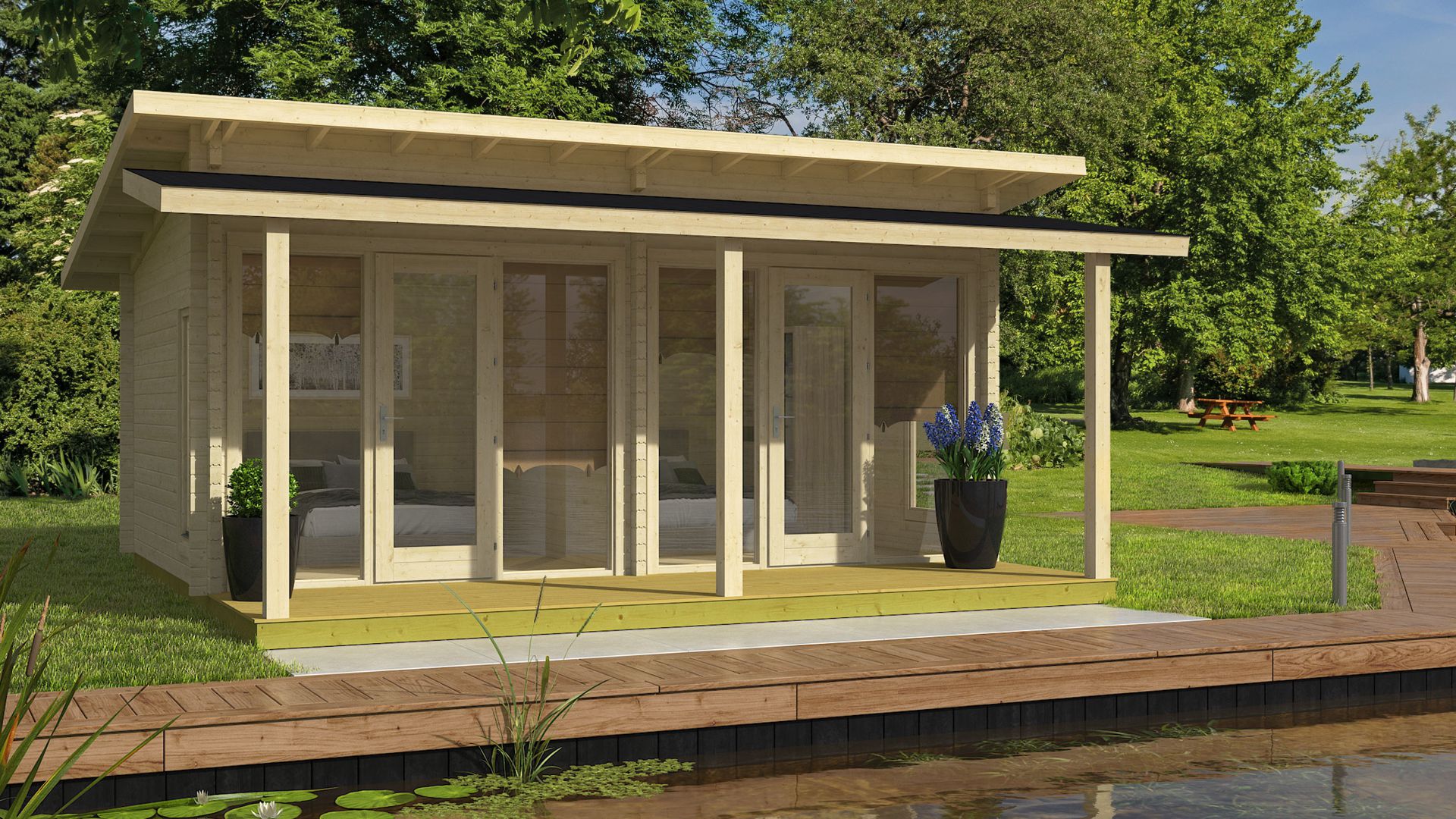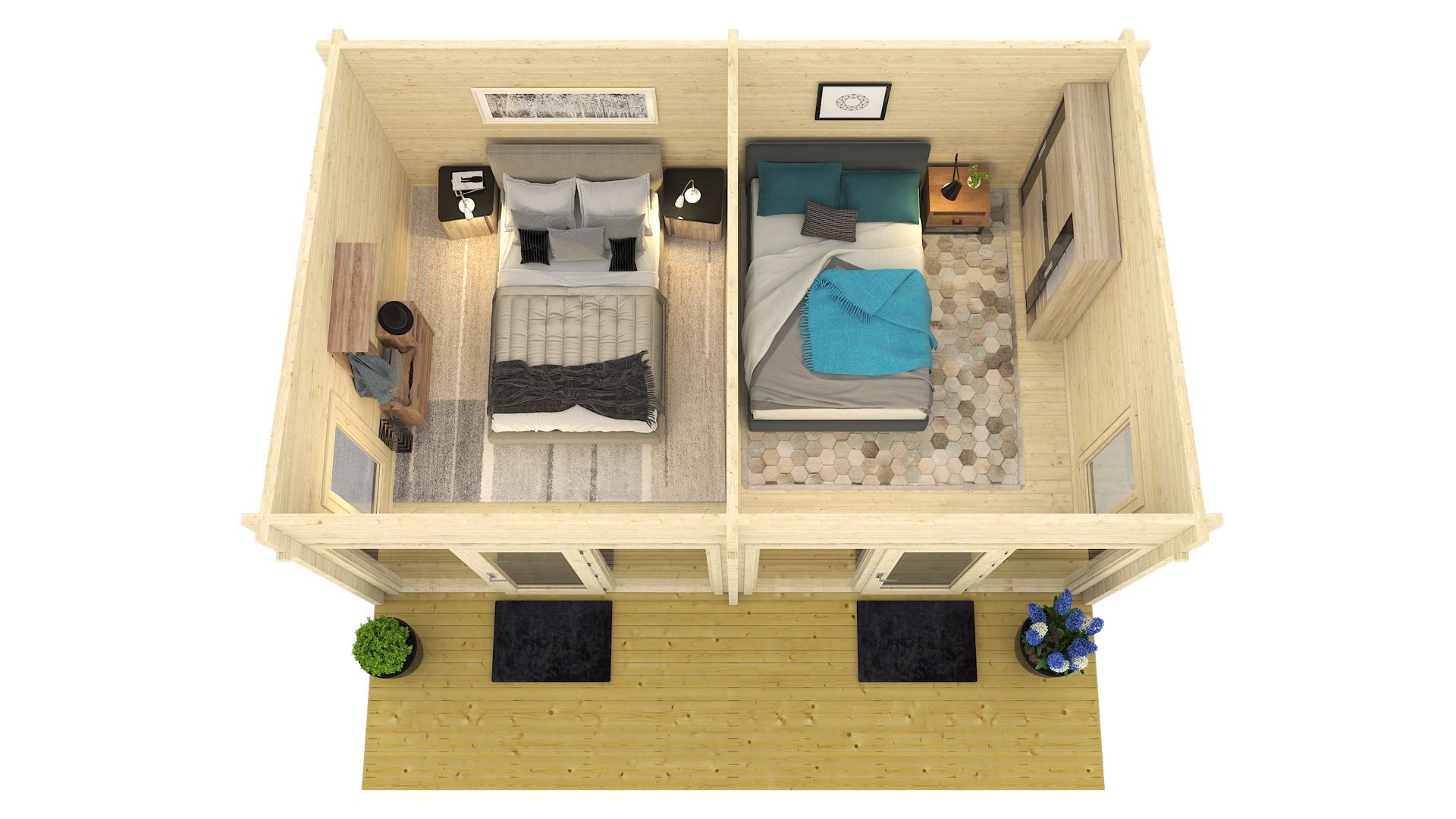 • Ove kuće su obično izrađene od kvalitetnog drva, kao što su bor, smreka ili cedar. Drvo može biti obrađeno ili neobrađeno, ovisno o željenom izgledu i zaštiti.