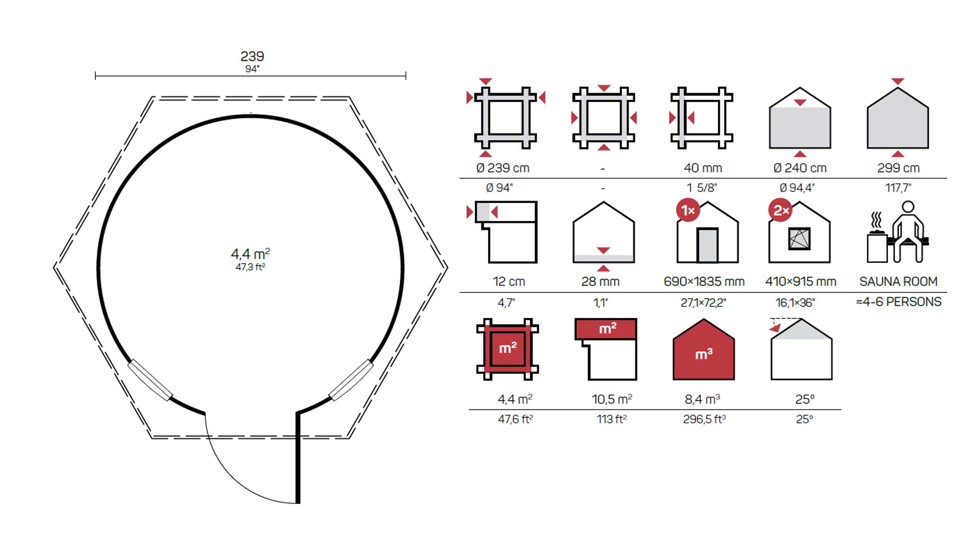 Sve drvene saune od 40 mm sadrže standardni set: vrata, prozore i opremu za pričvršćivanje koji čine montažu jednostavnom i brzom.